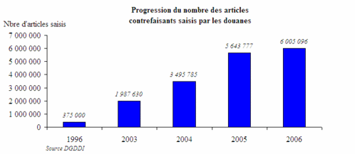 La Douane joue un rôle essentiel dans la lutte contre la contrefaçon car elle contrôle l'activité et le passage des marchandises sur l'ensemble du territoire. Elle peut recevoir des demandes d'interventions des entreprises mais peut également agir sur sa propre initiative. Elle possède des fiches décrivant les produits des entreprises qui le souhaitent. Ainsi, cela permet aux douanes de reconnaître les vrais produits des produits contrefaits. Les saisies douanières sont en constantes augmentation. Depuis la loi du 5 février 1994, la contrefaçon est un délit douanier c'est à dire que l'importation et l'exportation des produits contrefaits, la mise en circulation ou la détention d'une contrefaçon de marque sur le territoire est répréhensible.